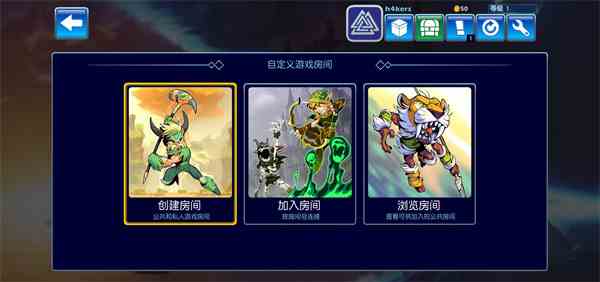 1、在格斗哈拉手机版的主界面找到自定义游戏房间并进入。