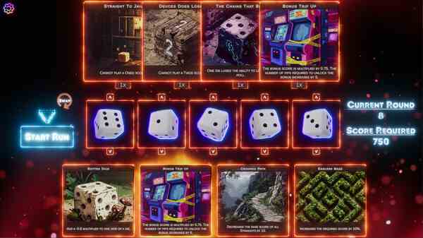 随着进度,游戏的难度逐渐提升,玩家需要在每轮中应对新的障碍和挑战,例如锁定骰子或受到限制的条件。